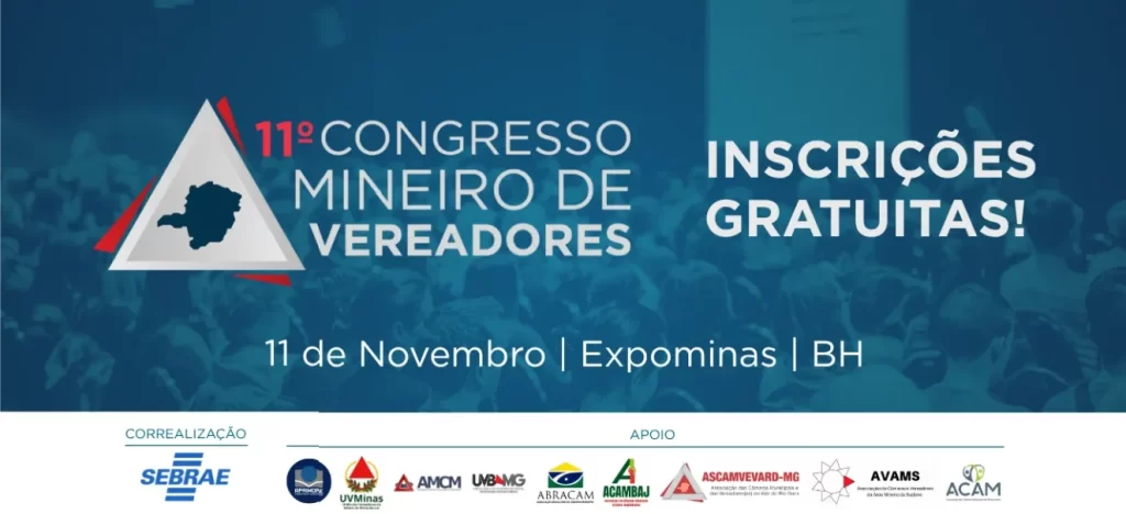 A Associação Mineira de Municípios (AMM) realiza, no dia 11 de novembro, no Expominas, em Belo Horizonte, o 11º Congresso Mineiro de Vereadores — o maior encontro da América Latina dedicado ao fortalecimento do Legislativo municipal. O evento reunirá vereadores, assessores, técnicos e servidores de Câmaras Municipais de todas as regiões de Minas para um dia de integração, aprendizado e debate sobre os principais desafios e oportunidades da gestão pública contemporânea.