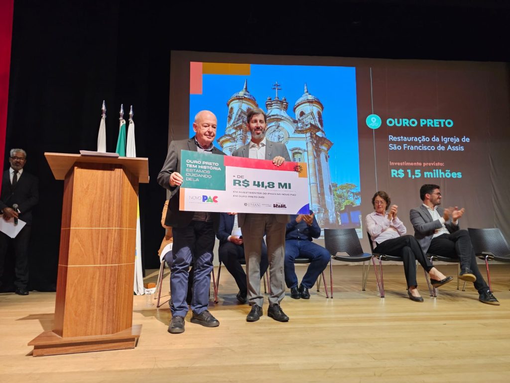 Na cerimônia, o prefeito Angelo Oswaldo assinou o Termo de Compromisso e recebeu um cheque simbólico com o valor dos recursos pelas mãos do presidente do Iphan, Leandro Grass. “O PAC das Cidades Históricas entra finalmente na execução dos projetos, com a aprovação técnica e financeira. São quase 42 milhões em Ouro Preto, o que representa muito em termos de proteção e valorização do patrimônio e em recursos injetados na nossa economia. Nossa Prefeitura investe e amplia as verbas da cultura porque sabemos como isso é determinante para o desenvolvimento social”, afirmou o prefeito.